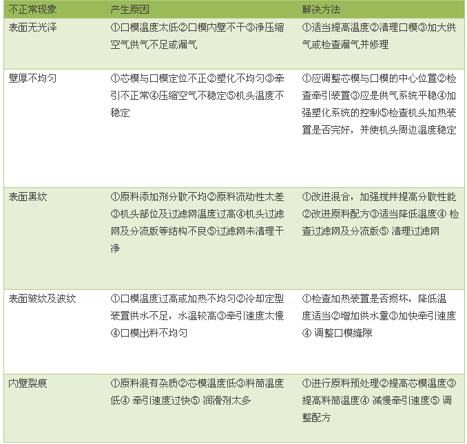 5、定徑裝置、冷卻裝置的溫(wēn)度