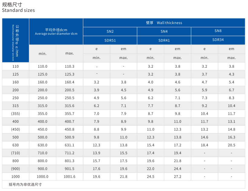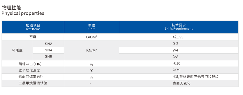 PVC-U無壓埋地排汙、排水用管材(cái)適用於室外埋地排汙、排水係統。其係統連接方式也分為兩種,承插式彈性密封圈連接(jiē)適(shì)用於(yú)100mm--1000mm,粘(zhān)連式連接適用於小(xiǎo)口徑110mm-200mm,一般采用承插式彈性密封圈連接, 一般輸運(yùn)溫度不宜超過60°C,本產品可用於非開(kāi)挖用頂管(guǎn)過程,通常長度為3m,用於疏通道路兩側的積水。